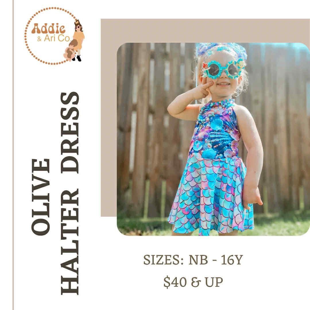 Olive Halter Dress   —- (scroll to see fabric options)